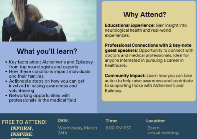 NeuroPath is proud to host the upcoming webinar, Navigating Neurological Challenges: An Introduction to Alzheimer’s and Epilepsy Awareness. Join us as a panel of professional speakers shares valuable insights, latest research, and practical information about these neurological conditions. This webinar is a great opportunity to learn more, ask questions, and gain tools to support yourself or loved ones affected by Alzheimer’s and epilepsy. Don’t miss out—register now and be part of this important conversation!